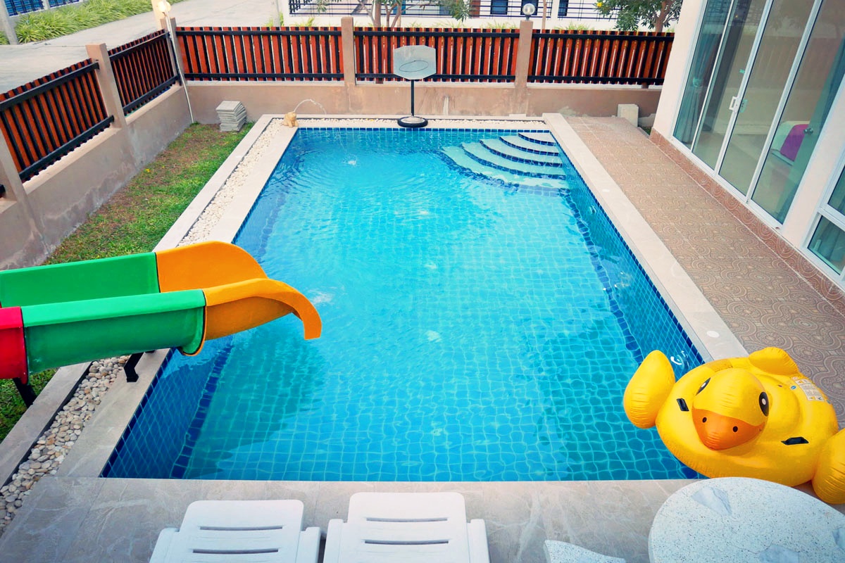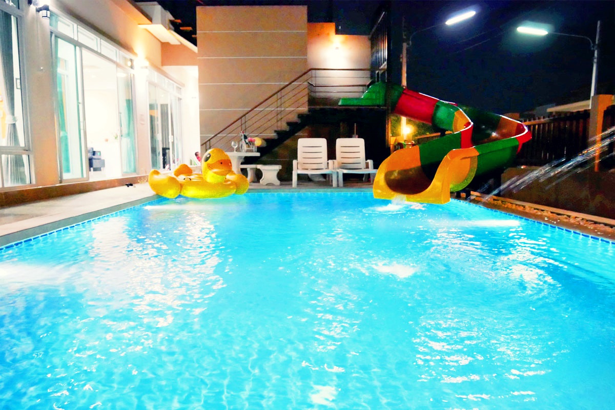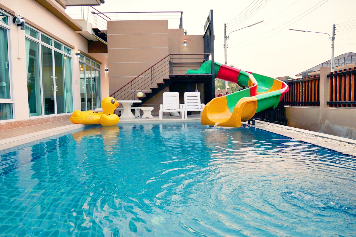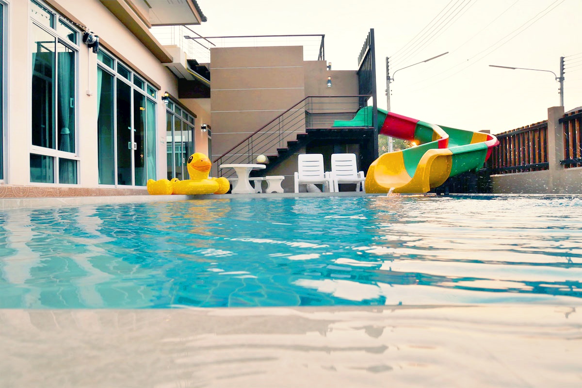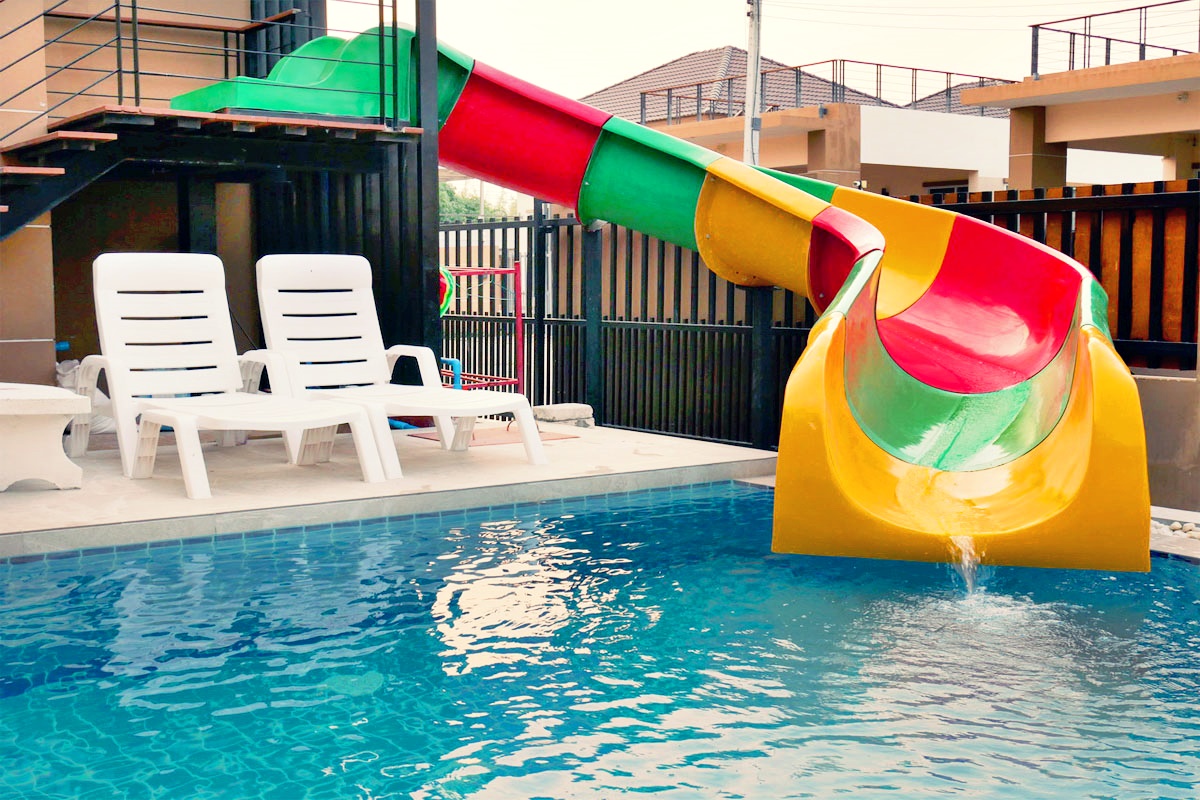 สระว่ายน้ำขนาด 4×7 เมตร, มีสไลเดอร์