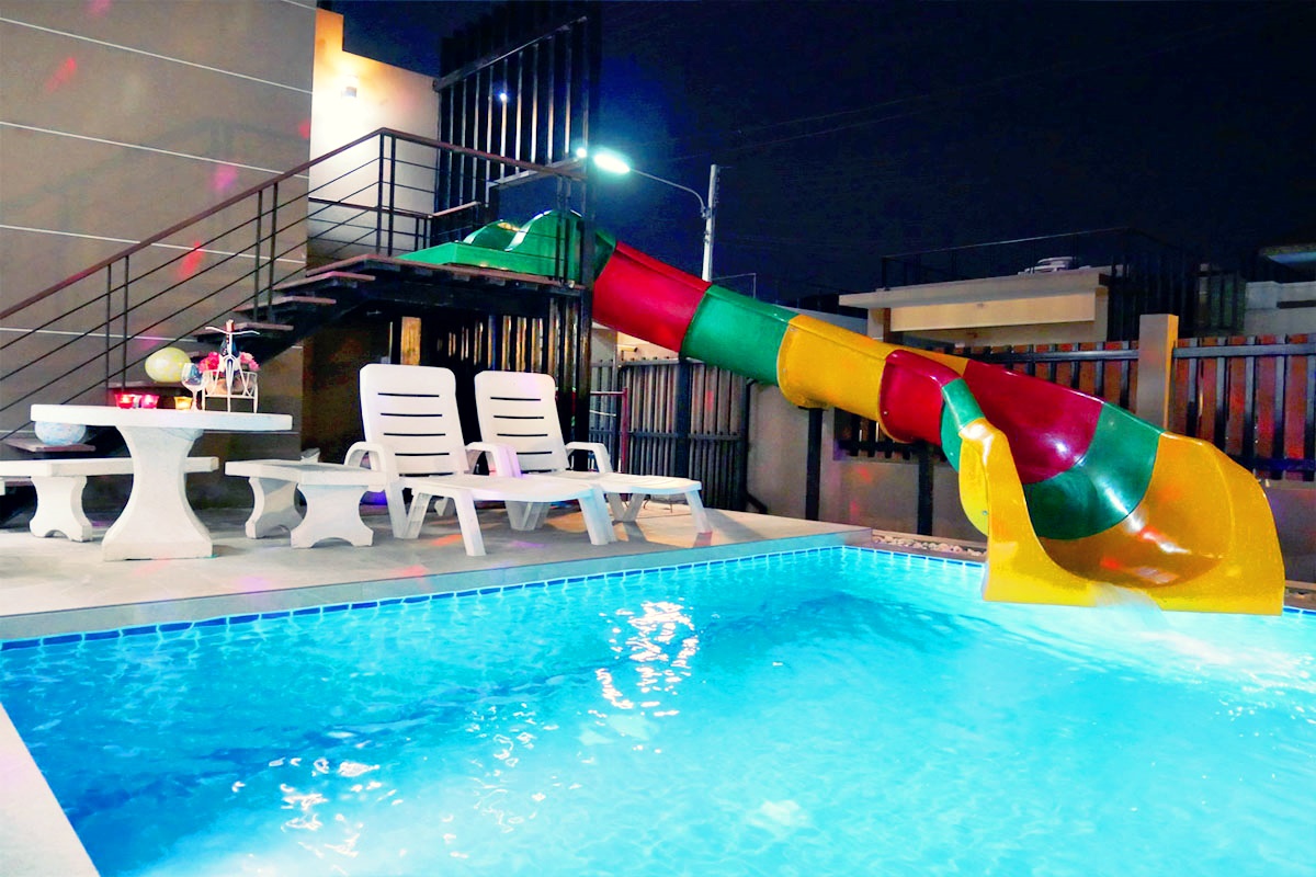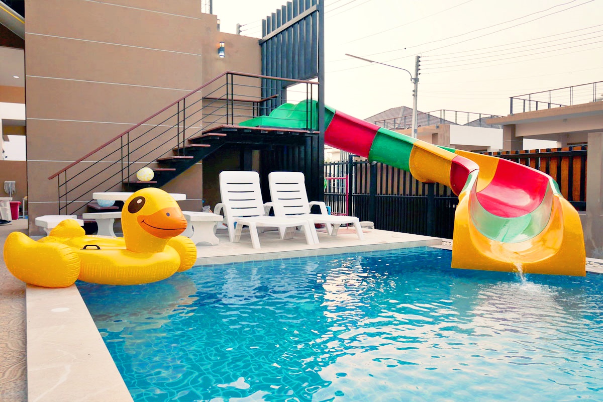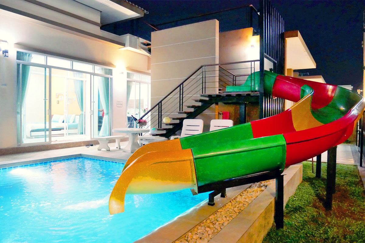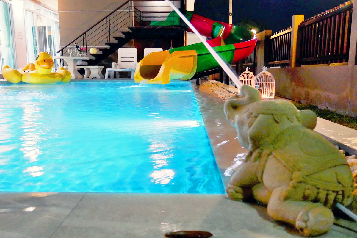 สระว่ายน้ำขนาด 4×7 เมตร, มีสไลเดอร์