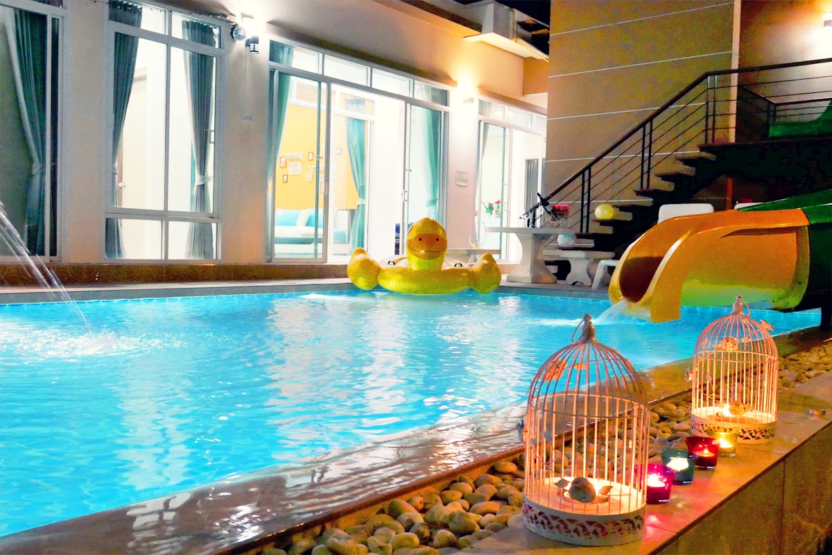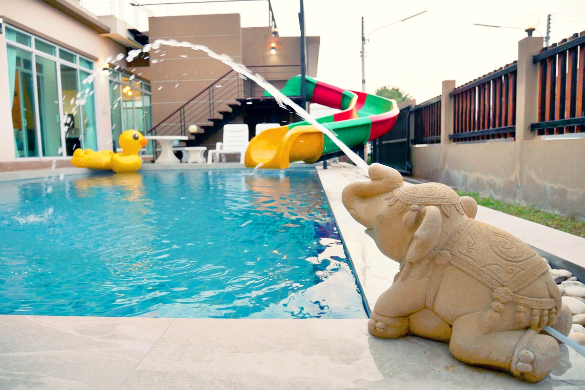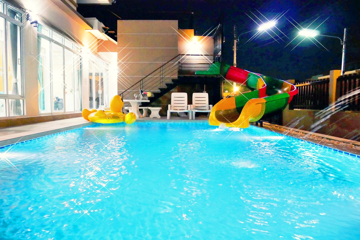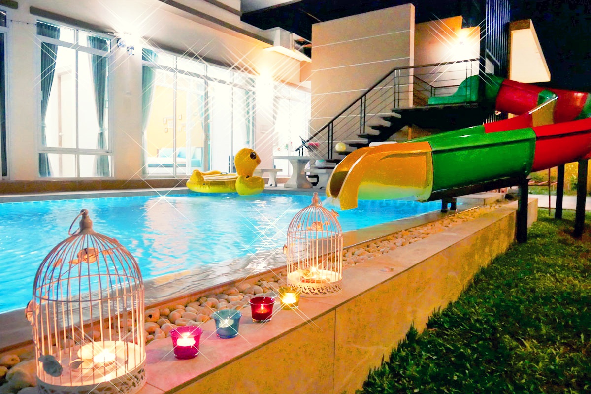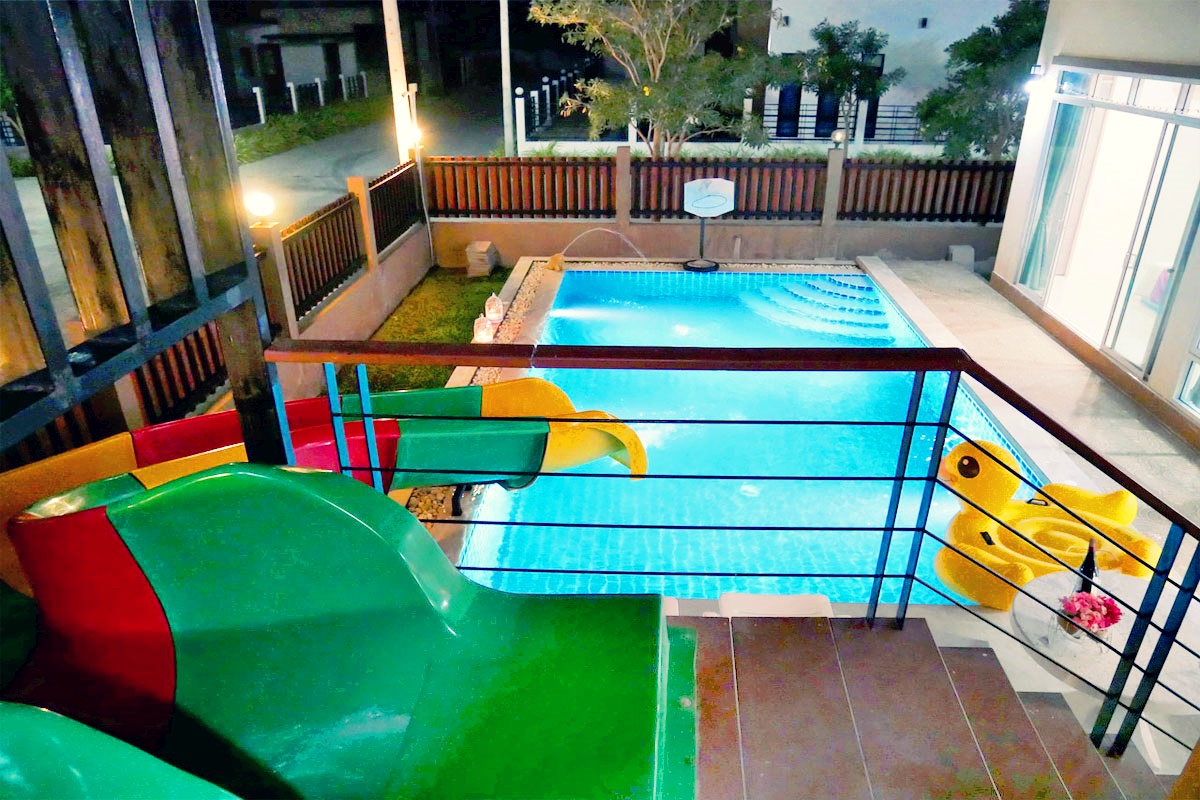 สระว่ายน้ำขนาด 4×7 เมตร, มีสไลเดอร์